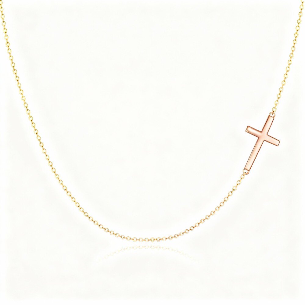 Experience sophistication with our stunning 10K Rose Gold Unisex Cross Pendant Necklace, crafted for a minimalist yet striking look.