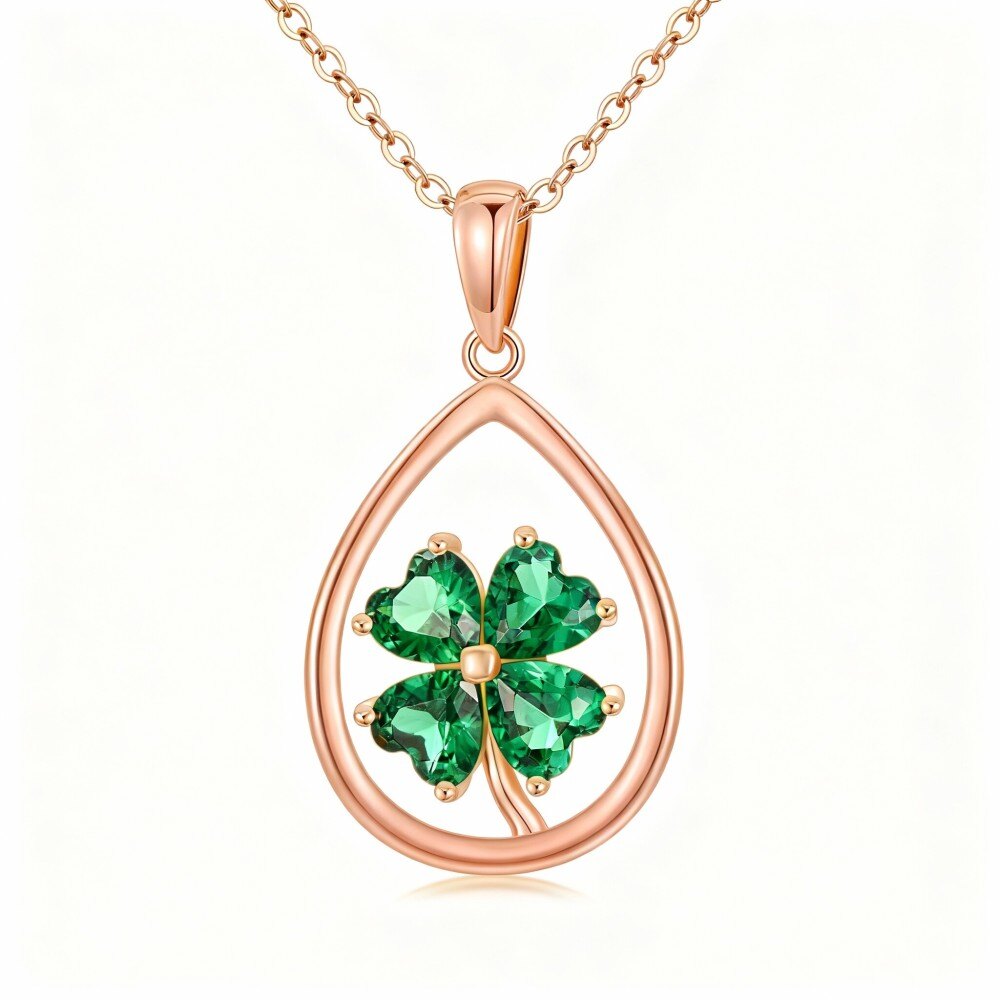 /10k-rose-gold-cubic-zirconia-four-leaf-clover--drop-shape-pendant-necklace-p14792362?sku=iy2673