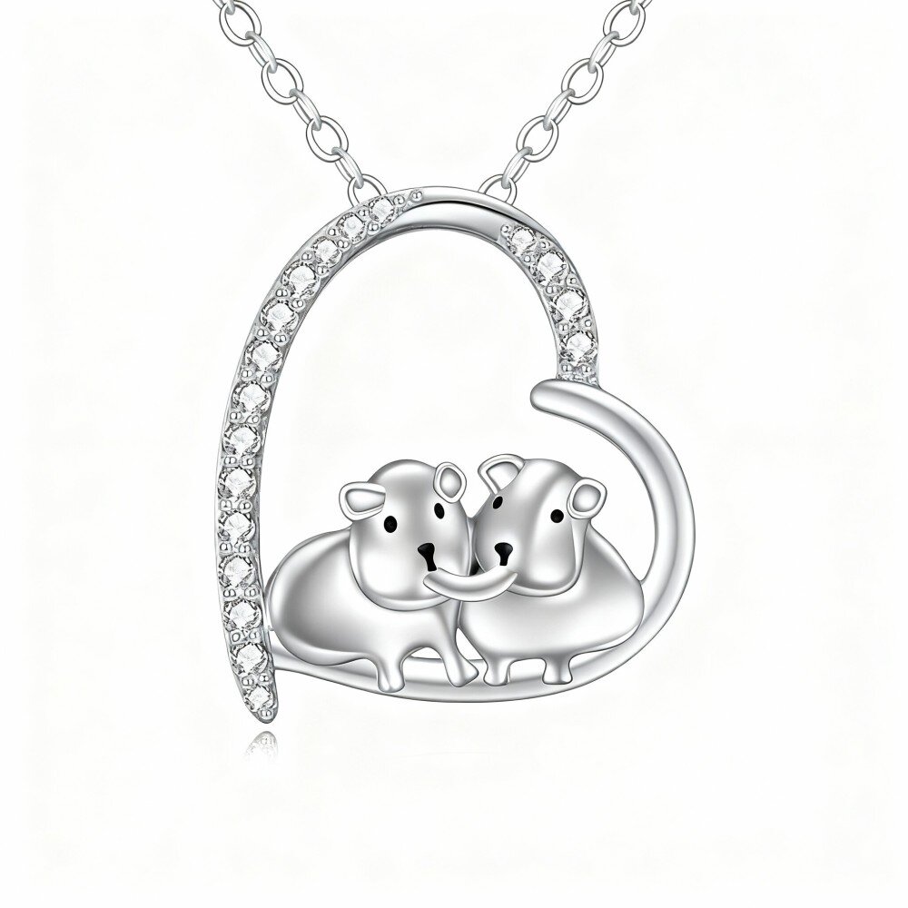 This remarkable piece is meticulously crafted from high-quality 10K White Gold, making it a timeless addition to any jewelry collection. The pendant features an adorable guinea pig nestled within a heart shape, both embellished with dazzling Cubic zirconia stones that ensure you sparkle at every event. Specifically designed for women, this necklace flawlessly merges whimsical charm with elegant style, making it a perfect gift for a loved one or a delightful treat for yourself. Whether you're dressing up for a special occasion or adding a touch of glamour to your everyday outfit, this necklace is sure to turn heads and ignite conversations. Its unique design and quality craftsmanship guarantee that it will be cherished for years to come, making it not just a piece of jewelry, but a treasured keepsake.