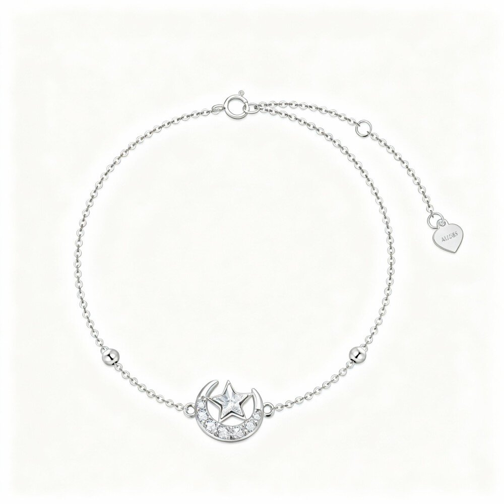 This bracelet features enchanting moon and star charms embellished with brilliant Cubic Zirconia, capturing the essence of celestial beauty. Crafted from premium 10K White Gold, it radiates a warm glow and is perfect for layering or standalone wear. Whether you're dressing up for a special occasion or adding a touch of elegance to your everyday attire, this piece is versatile enough to complement any outfit. Each charm is meticulously designed to evoke a sense of wonder, making it an ideal gift for loved ones or a delightful treat for yourself. Embrace your unique style and let this bracelet serve as a reminder of the magic in the universe.