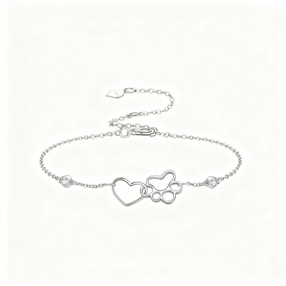 Experience elegance and sentimentality with our exquisite 10K White Gold Charm Bracelet, beautifully adorned with cubic zirconia and charming heart and paw motifs.