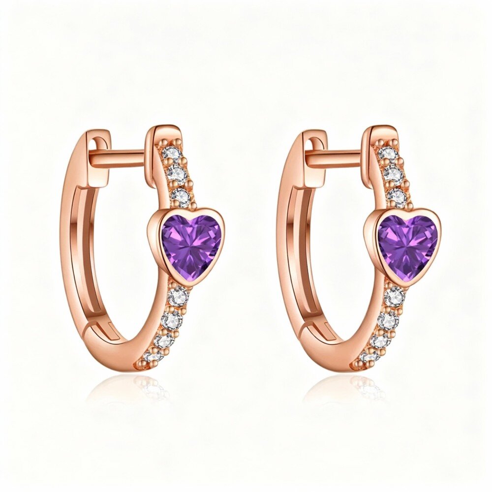 Experience the allure of our 10K Rose Gold hoop earrings, beautifully designed for women. Adorned with heart-shaped accents and sparkling cubic zirconia, these earrings bring a dazzling touch to any ensemble. Customize your pair with a personalized birthstone to create a meaningful and unique statement. Crafted from quality Rose Gold, these earrings offer a luxurious yet heartfelt accessory perfect for gifting or elevating your own jewelry collection.