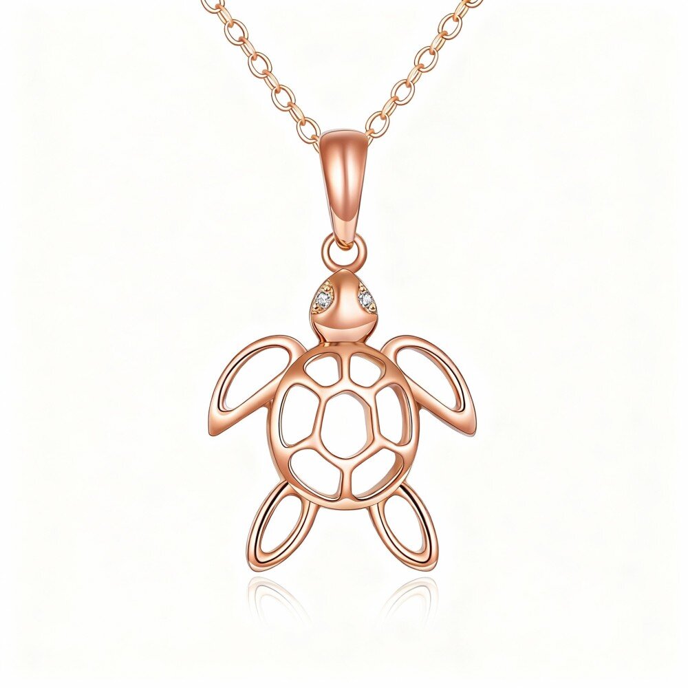 Experience the allure of our elegant 14K Rose Gold Tortoise Pendant Necklace, beautifully embellished with sparkling Cubic Zirconia, perfect for all genders.