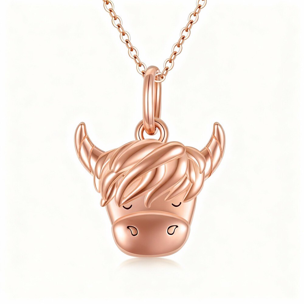 Elevate your fashion with our stunning 10K Rose Gold Highland Cow Pendant Necklace, a perfect choice for unique jewelry lovers.