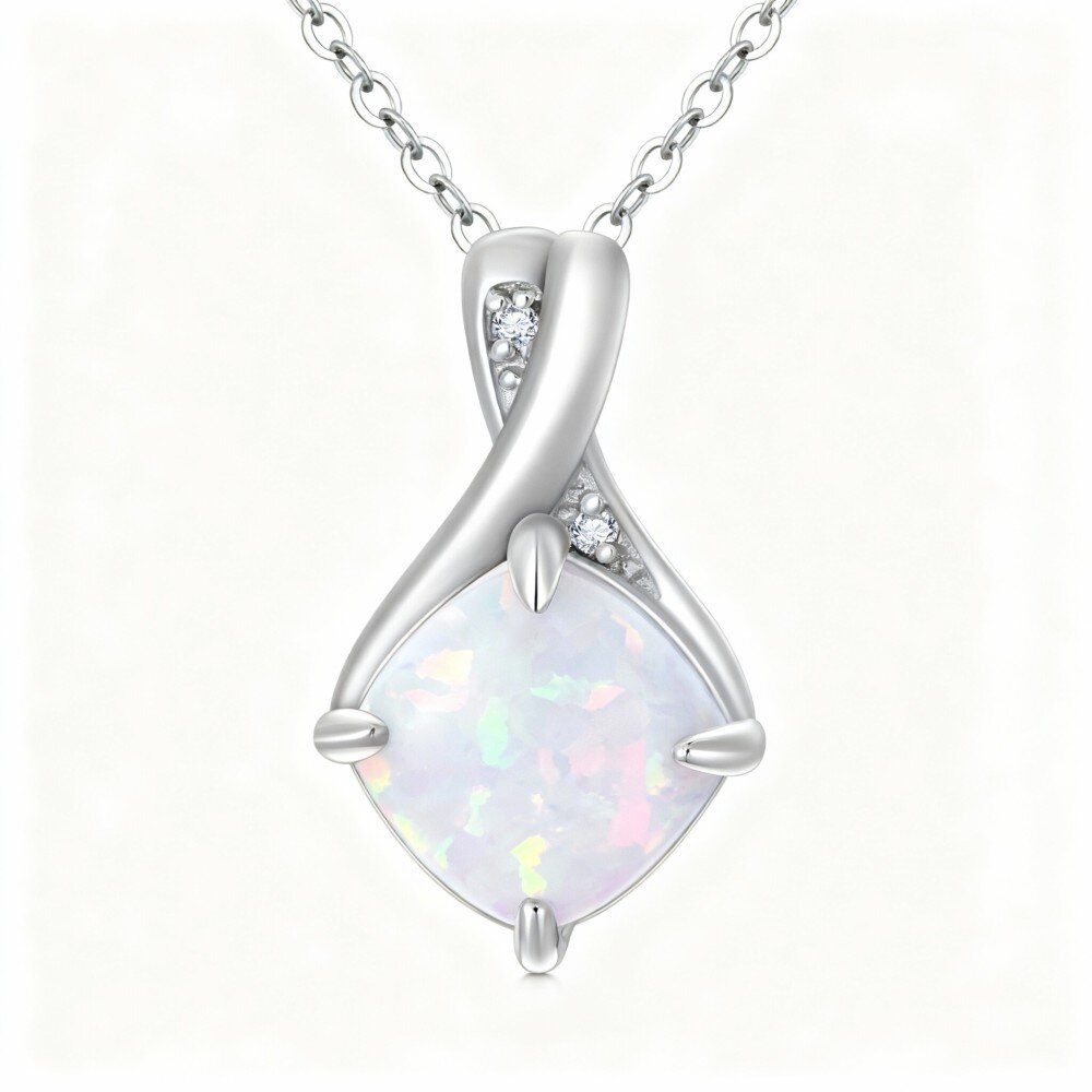 Elevate your elegance with our stunning 10K White Gold Pendant Necklace, featuring a dazzling princess-square diamond and a mesmerizing opal set within an intricate infinity symbol design.