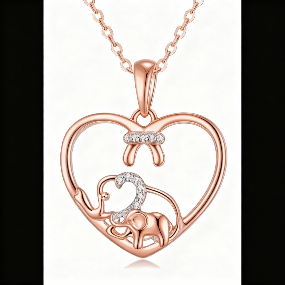 Elevate your style with our exquisite 10K Rose Gold Pendant necklace, featuring a stunning circular-shaped Moissanite centerpiece, intricately designed with an elegant elephant and heart motif—a perfect blend of elegance and meaningful symbolism for women.
