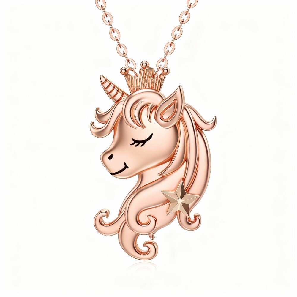 This exquisite necklace showcases a delicately crafted unicorn pendant made from high-quality 10K Rose Gold, ensuring a brilliant shine and lasting durability. The minimalist design, free from additional stones, highlights the stunning Rose Gold and the intricate silhouette of the unicorn, making it a versatile accessory suitable for both casual outings and special occasions. This enchanting piece promises to infuse a sense of magic into your jewelry collection, allowing you to express your unique style and appreciation for whimsical elegance. Whether you're dressing up for a special event or adding a touch of fantasy to your everyday look, this 10K Rose Gold unicorn pendant necklace is the perfect choice.
