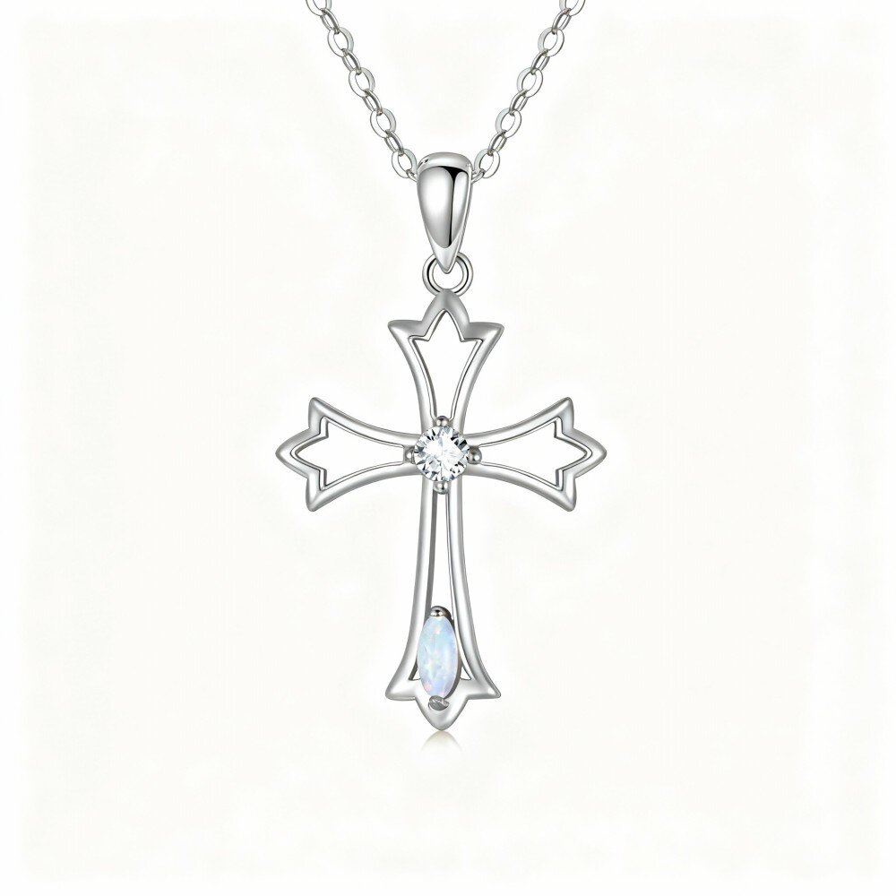 Our 10K White Gold pendant necklace is a stunning piece for women who appreciate fine jewelry, artfully combining sophistication and spirituality. The intricately designed cross features brilliant cubic zirconia, which sparkles in the light, while the captivating opal centerpiece brings a unique splash of color. This necklace is versatile enough to be worn for both special occasions and as an everyday statement of faith, making it an essential addition to any jewelry collection. Its timeless design ensures that it will remain a cherished piece for years to come, reflecting both grace and style. Whether you're dressing up for a formal event or adding a touch of elegance to your daily outfit, this necklace embodies the perfect blend of beauty and meaning.