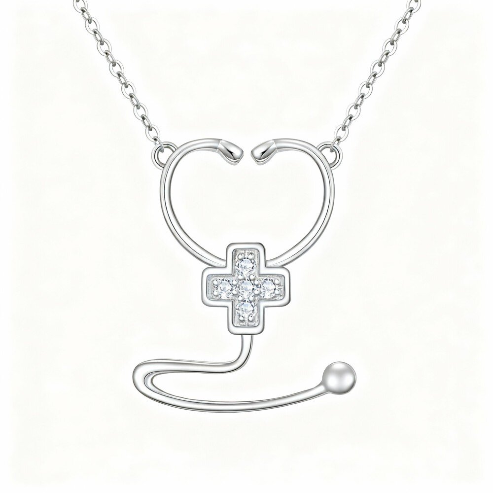 Our stunning 10K White Gold Pendant Necklace beautifully intertwines a classic cross with a sleek stethoscope, embellished with radiant cubic zirconia stones. This piece is more than just a necklace; it symbolizes faith and passion, making it a perfect accessory for modern women who appreciate both style and significance in their jewelry. Each necklace is masterfully crafted to ensure timeless beauty, making it an ideal tribute for healthcare professionals or anyone who values meaningful symbols in their fashion choices. The luminous 10K White Gold craftsmanship guarantees lasting shine and durability, while the sparkling cubic zirconia brings a touch of glamour. Whether for everyday wear or special occasions, this necklace stands out as a statement piece that sparks conversations. Celebrate your unique style and sentiment with a necklace that not only elevates your outfit but also serves as an unforgettable gift for loved ones.