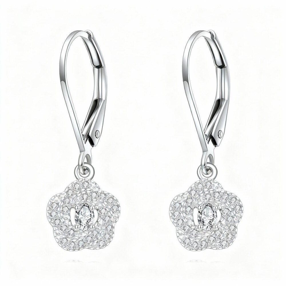 Discover the allure of our 10K White Gold Drop Earrings, featuring dazzling Cubic Zirconia and a unique Flower of Life design, perfect for modern elegance.