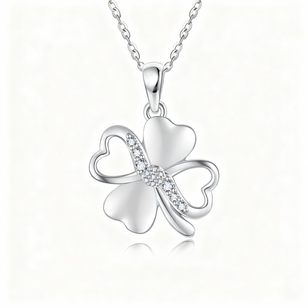Discover exquisite craftsmanship with our 10K White Gold pendant necklace, showcasing a charming cubic zirconia four-leaf clover for an enchanting touch of luck.