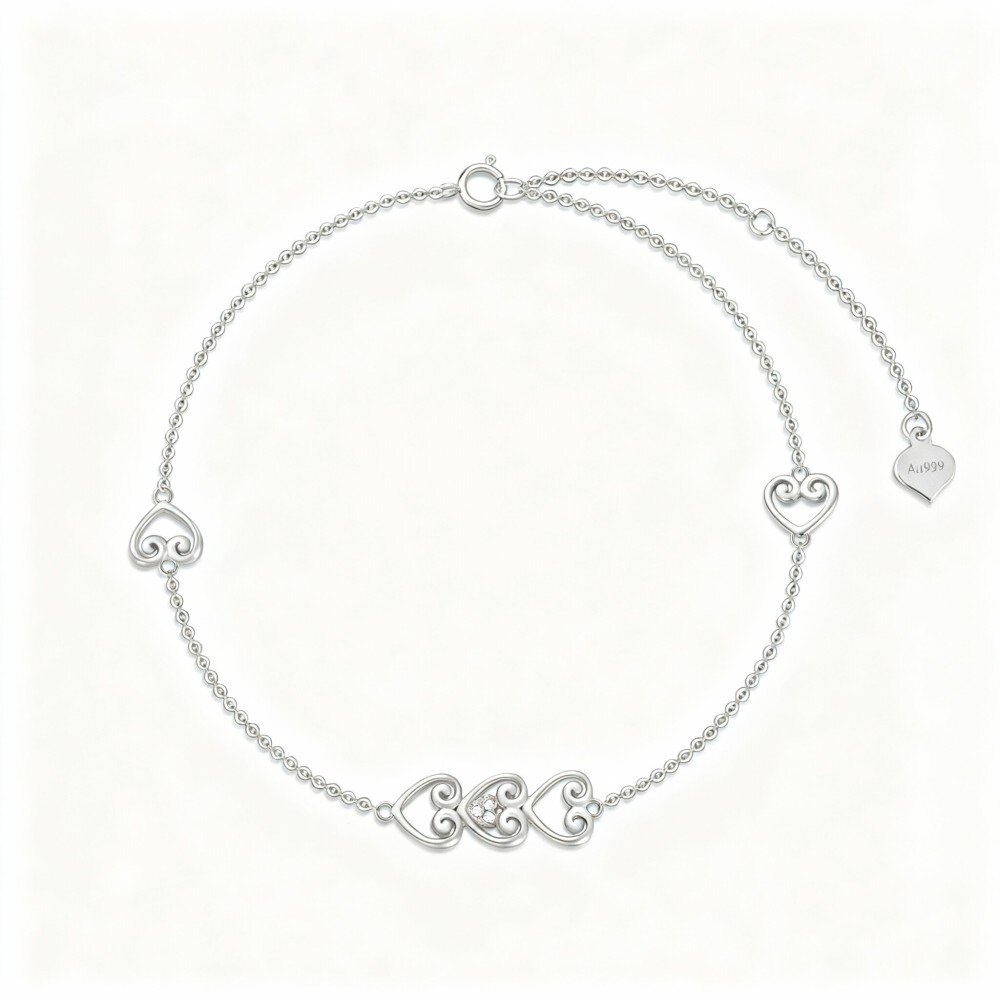 Discover our stunning 10K White Gold Heart Charm Bracelet, designed for women who appreciate elegance and romance.