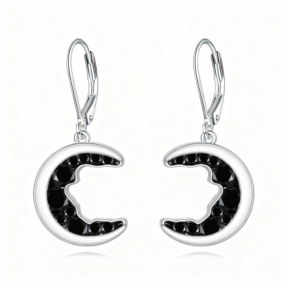 Enhance your style with our exquisite 10K White Gold lever-back earrings, featuring a mesmerizing moon design adorned with sparkling cubic zirconia. Perfect for any occasion.