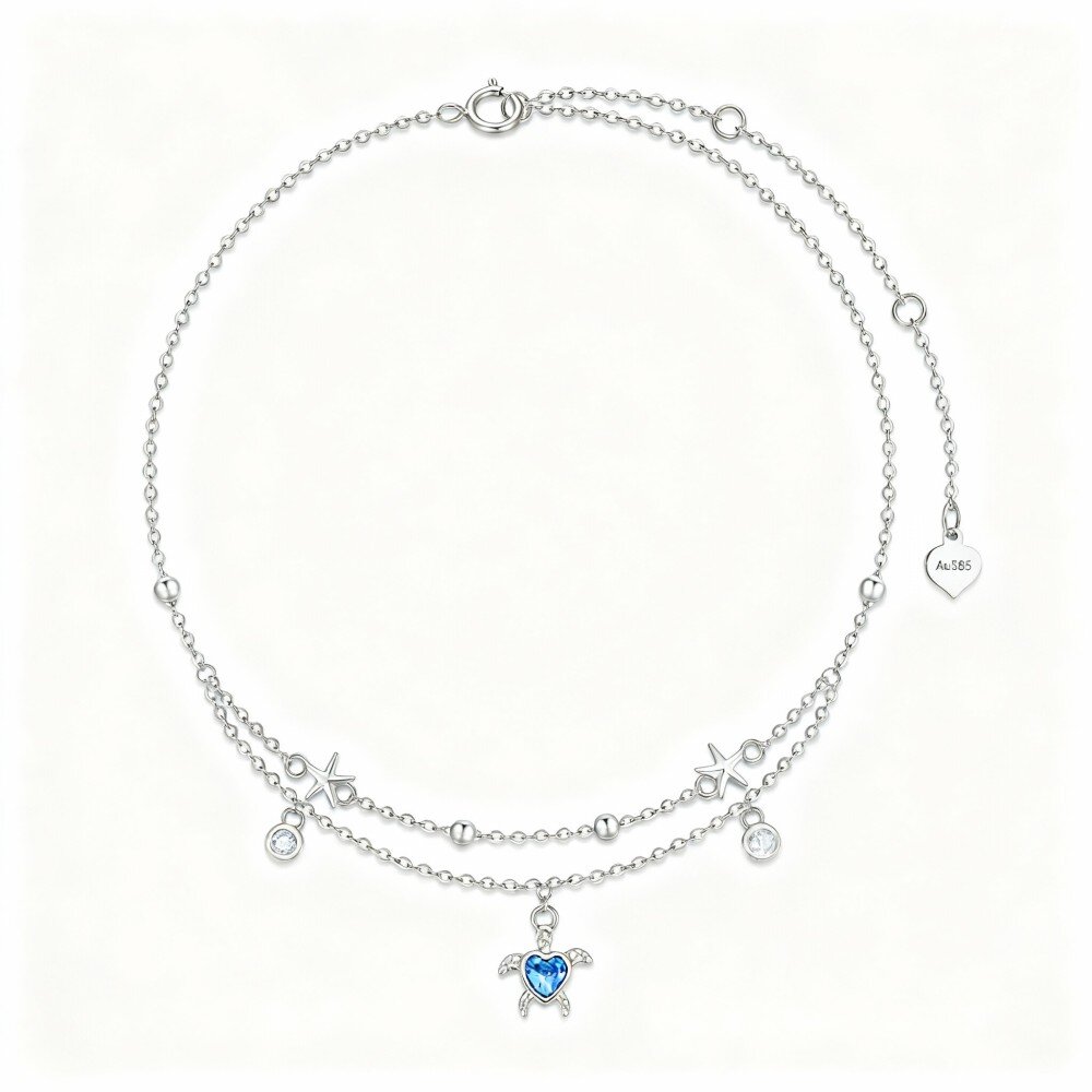Elevate your accessory collection with our gorgeous 10K White Gold Multi-Layered Charm Anklet, thoughtfully designed for women who cherish the beauty of the ocean and unique fashion statements. This stunning anklet features charming motifs like a sea turtle and a starfish, both elegantly embellished with sparkling zircon stones. The intricate design not only captures the essence of marine life but also adds a glamorous touch to any outfit. Crafted from premium 10K White Gold, this anklet is both durable and radiant, ensuring a luxurious shine that complements all skin tones. The multi-layered style adds depth and versatility, making it ideal for stacking with other jewelry or wearing alone for a bold statement. Each shimmering charm, adorned with exquisite zircon gemstones, brings a playful yet sophisticated flair to your jewelry collection. This anklet serves as a perfect gift for ocean enthusiasts and fashion lovers alike, allowing you to enjoy a comfortable fit and timeless elegance while showcasing your love for the sea.