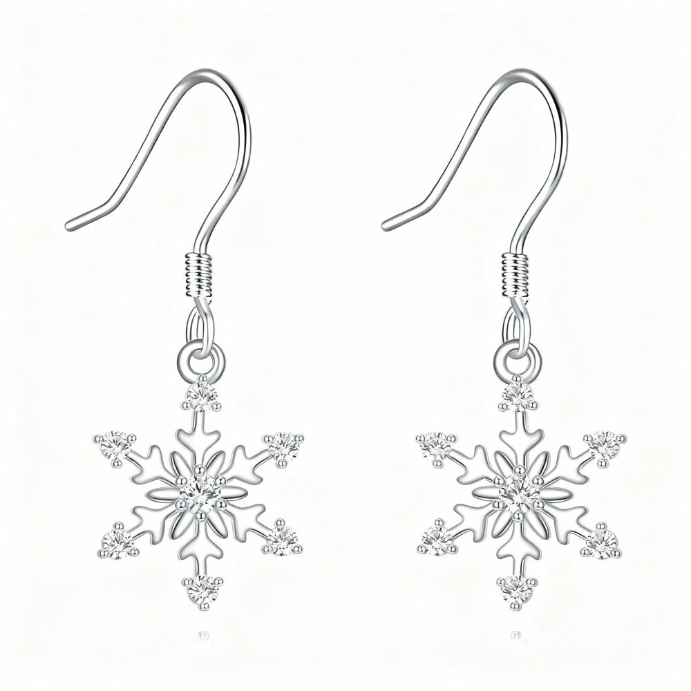 Discover the perfect blend of elegance and charm with our exquisite White Gold drop earrings featuring a captivating snowflake design.