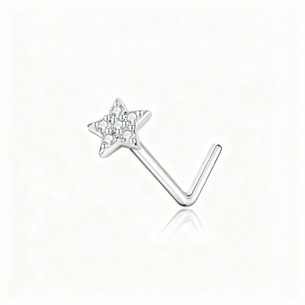 Explore our exquisite 10K White Gold Nose Ring adorned with shimmering Cubic Zirconia in a beautiful star design, the perfect accessory for any jewelry lover.