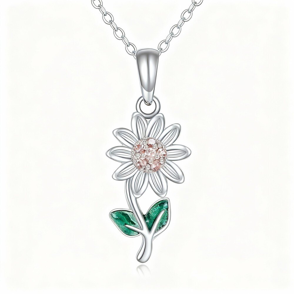 Elevate your style with our exquisite 10K White Gold Pendant Necklace featuring a radiant pink sunflower and sparkling cubic zirconia.
