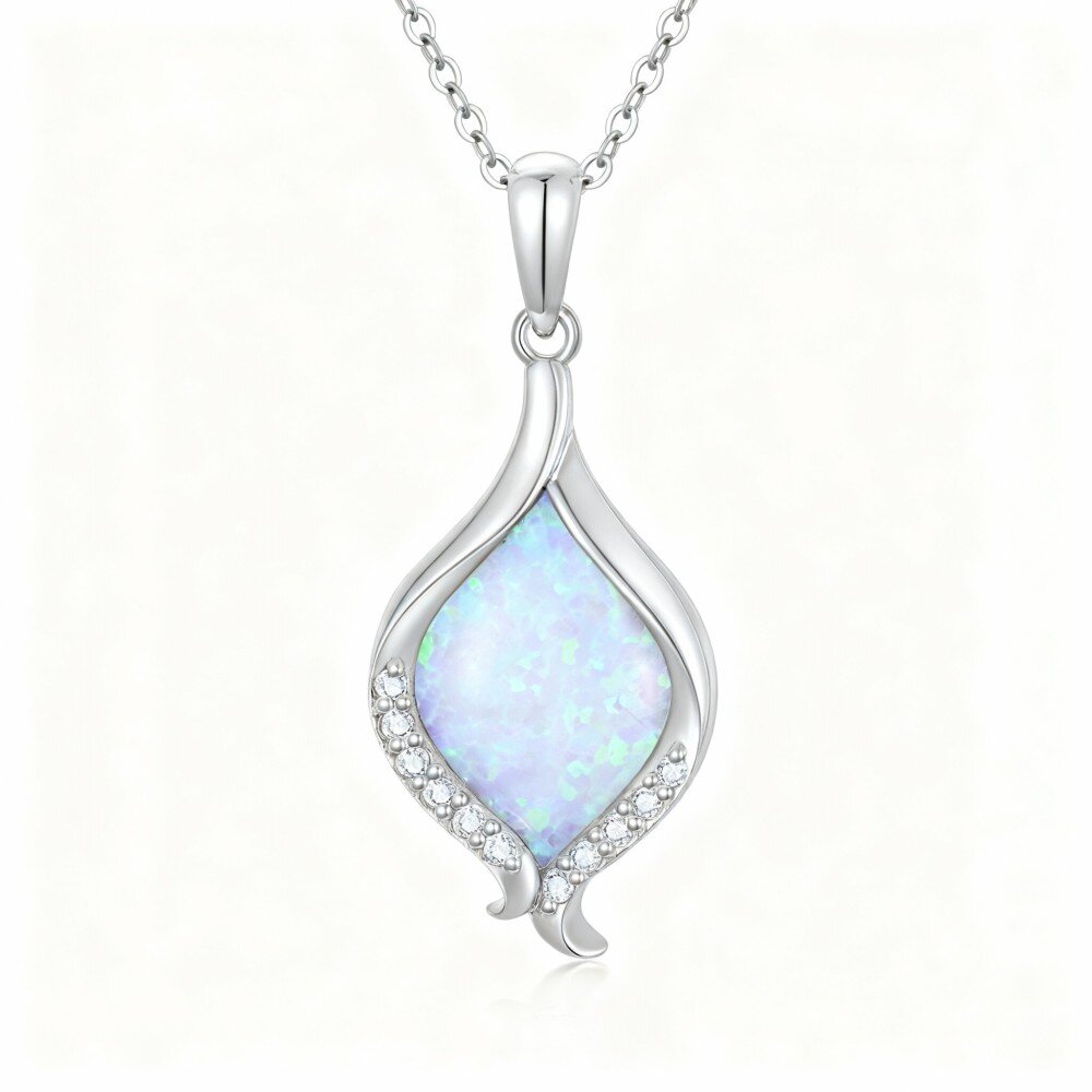 Explore our beautiful 10K White Gold Pendant Necklace, featuring a brilliant Diamond and a mesmerizing opal, perfect for women who love elegance in their jewelry.