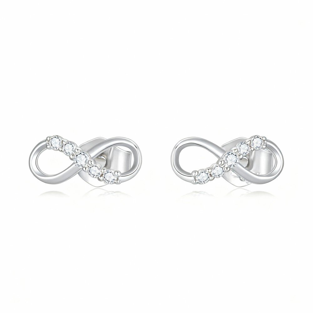 Experience the charm of our 10K White Gold Stud Earrings, showcasing stunning diamonds in a beautifully crafted infinity symbol design.