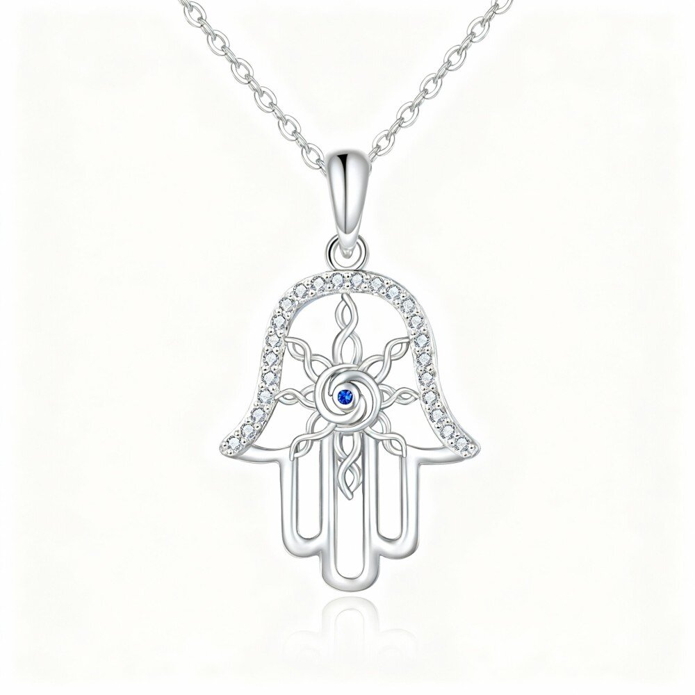Enhance your style with our exquisite 10K White Gold Pendant Necklace, featuring the symbolic Evil Eye and Hamsa Hand, designed for women who value elegance and protection.