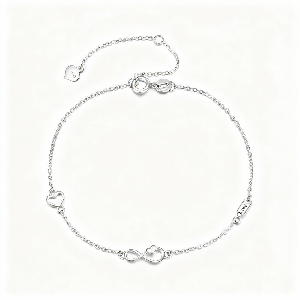 Crafted from high-quality 10K White Gold, this Charm bracelet showcases a beautiful intertwining design of a heart and the infinity symbol, representing eternal love and connection. Its minimalist aesthetic ensures it is suitable for any outfit, making it a versatile piece for both casual wear and formal events. The delicate craftsmanship highlights the beauty of simplicity, offering a piece that speaks volumes without needing embellishments. Whether you are treating yourself or seeking a thoughtful gift for a loved one, this bracelet is an ideal choice. It embodies timeless elegance and serves as a reminder of the cherished bonds we share. Embrace the artistry of jewelry with this stunning bracelet that reflects your sophisticated taste and appreciation for beauty.