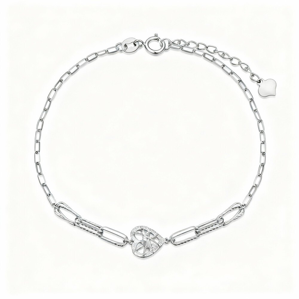 Experience the beauty of our White Gold heart Charm bracelet designed for women who cherish elegance and sophistication.
