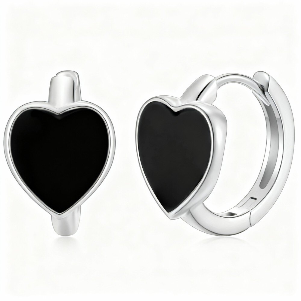 Discover the perfect blend of elegance and luxury with our heart-shaped hoop earrings made from 14K White Gold and exquisite black agate stones.