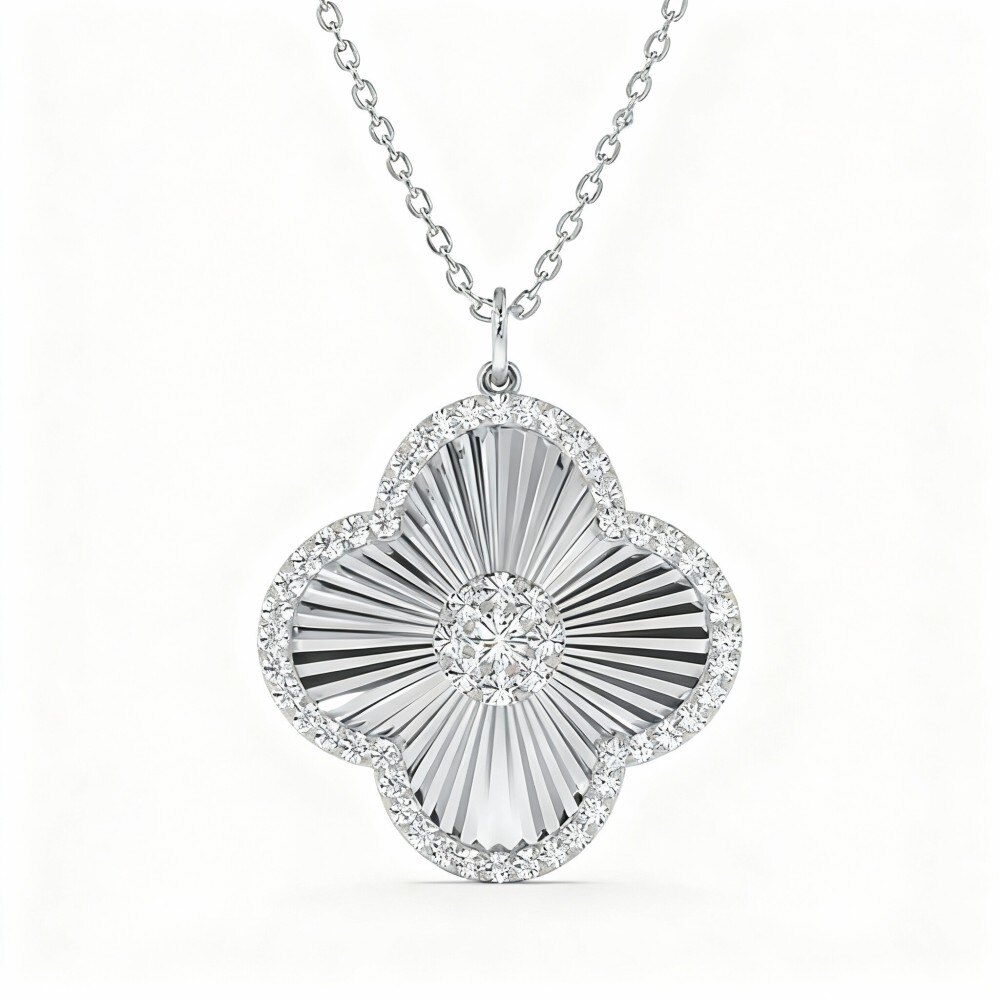 Elevate your style with our exquisite 10K White Gold Four Leaf Clover Pendant Necklace, featuring a stunning lab-created diamond totaling 0.38 CT that embodies elegance and charm.