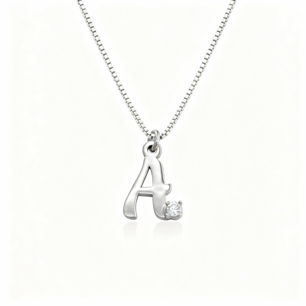 Crafted from 10K solid White Gold, this exquisite necklace boasts a luminous lab created diamond, offering both beauty and ethical brilliance. The pendant can be personalized with a letter of your choice, making it a meaningful gift for yourself or a loved one. Whether you’re dressing up for a special occasion or adding a touch of sophistication to your everyday look, this piece is a timeless addition to any jewelry collection.