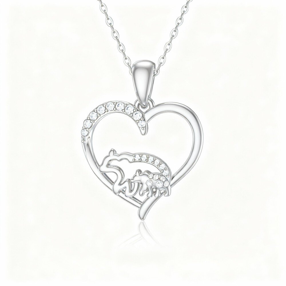 Explore the exquisite beauty of our 10K White Gold pendant necklace, which showcases a captivating polar bear heart design adorned with a sparkling Moissanite Gemstone.