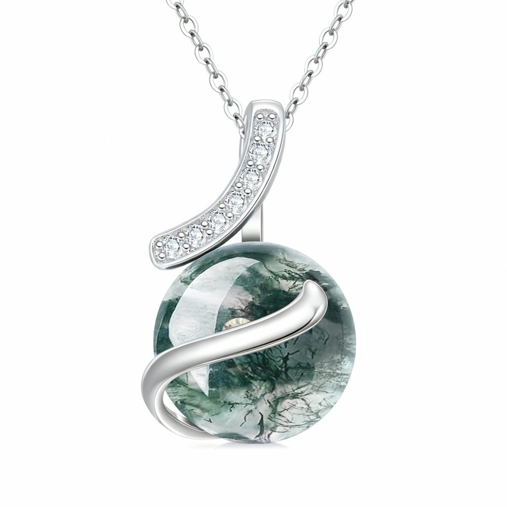 Enhance your elegance with our exquisite 10K White Gold Pendant Necklace showcasing a beautiful round Moss Agate gemstone, perfect for nature enthusiasts.