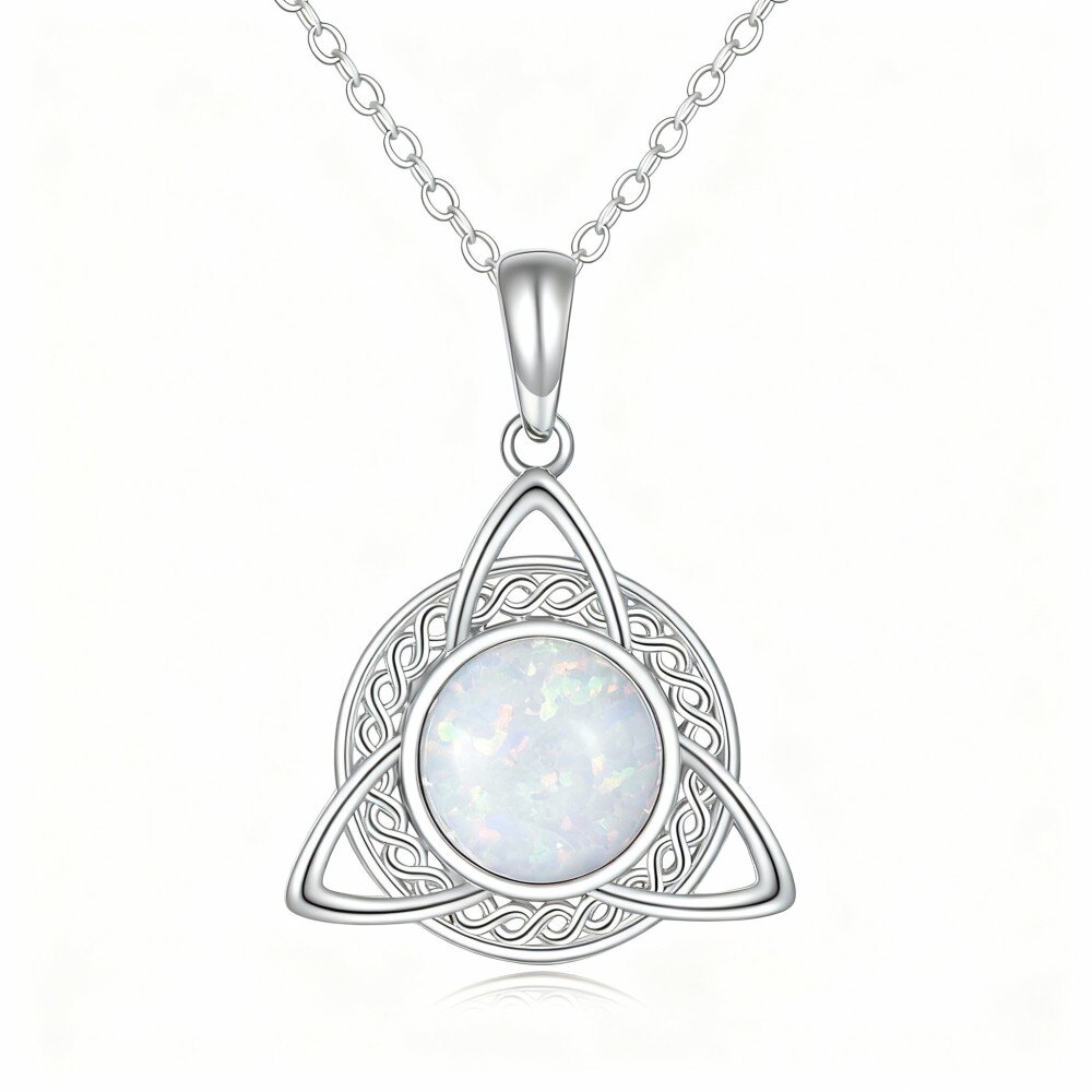 Elevate your style with our exquisite 10K White Gold Pendant Necklace featuring a mesmerizing opal in a Celtic knot design.