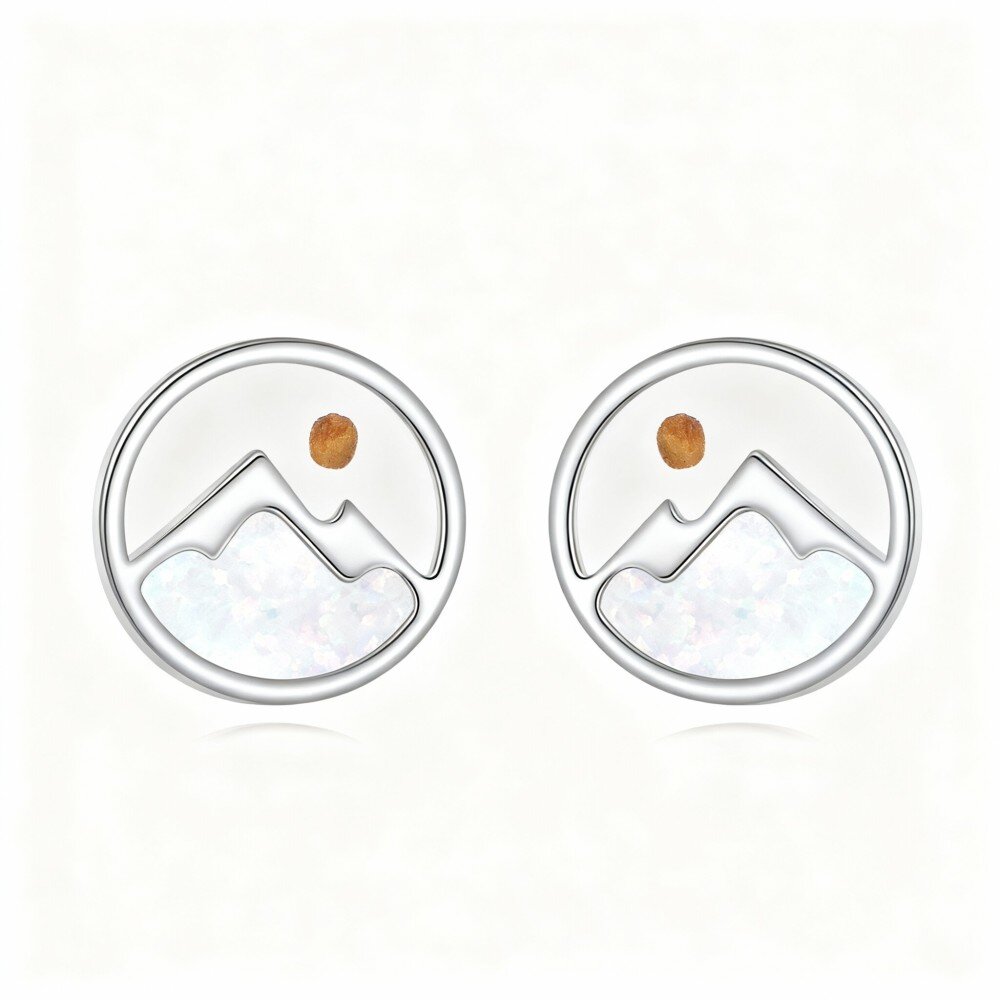 Discover the beauty of our exquisite 10K White Gold Stud Earrings adorned with mesmerizing opal stones, inspired by majestic mountain landscapes.
