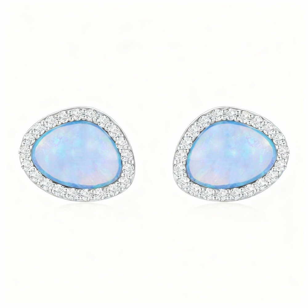 Experience timeless elegance with our 10K White Gold Opal Stud Earrings, designed for women who love exquisite jewelry.