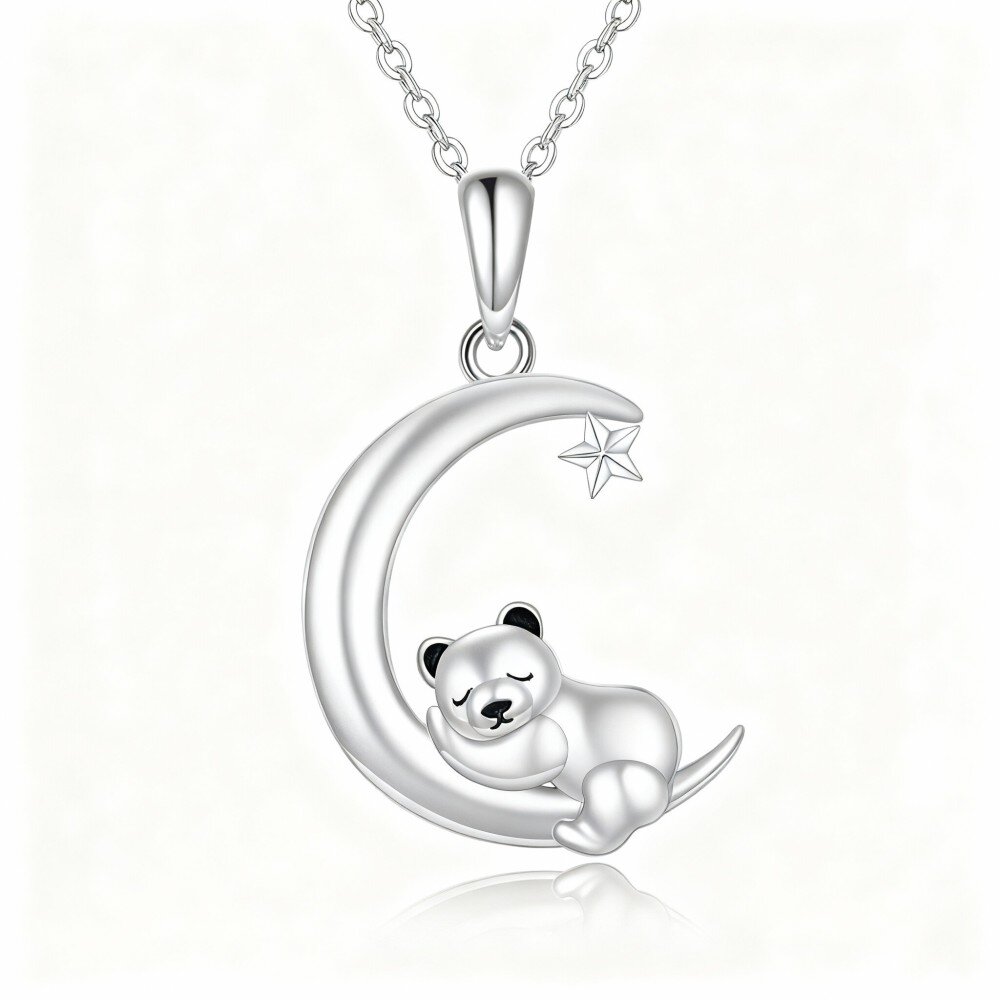 This exquisite necklace features a delightful panda lovingly embracing a crescent moon, representing a harmonious blend of playful innocence and sophisticated design. Made from high-quality 10K White Gold, this pendant is a true masterpiece that enhances any jewelry collection. Its intricate craftsmanship showcases the unique charm of the panda, appealing to those with a taste for the extraordinary. Perfect for daily wear or special occasions, this necklace serves as a versatile accessory that effortlessly elevates any outfit. Whether you're treating yourself or searching for the perfect gift for a loved one, this enchanting piece is a thoughtful choice for women who appreciate distinctive, well-crafted jewelry. Celebrate life's special moments or simply enjoy your personal style with this captivating 10K White Gold pendant necklace, destined to become a cherished favorite for years to come.