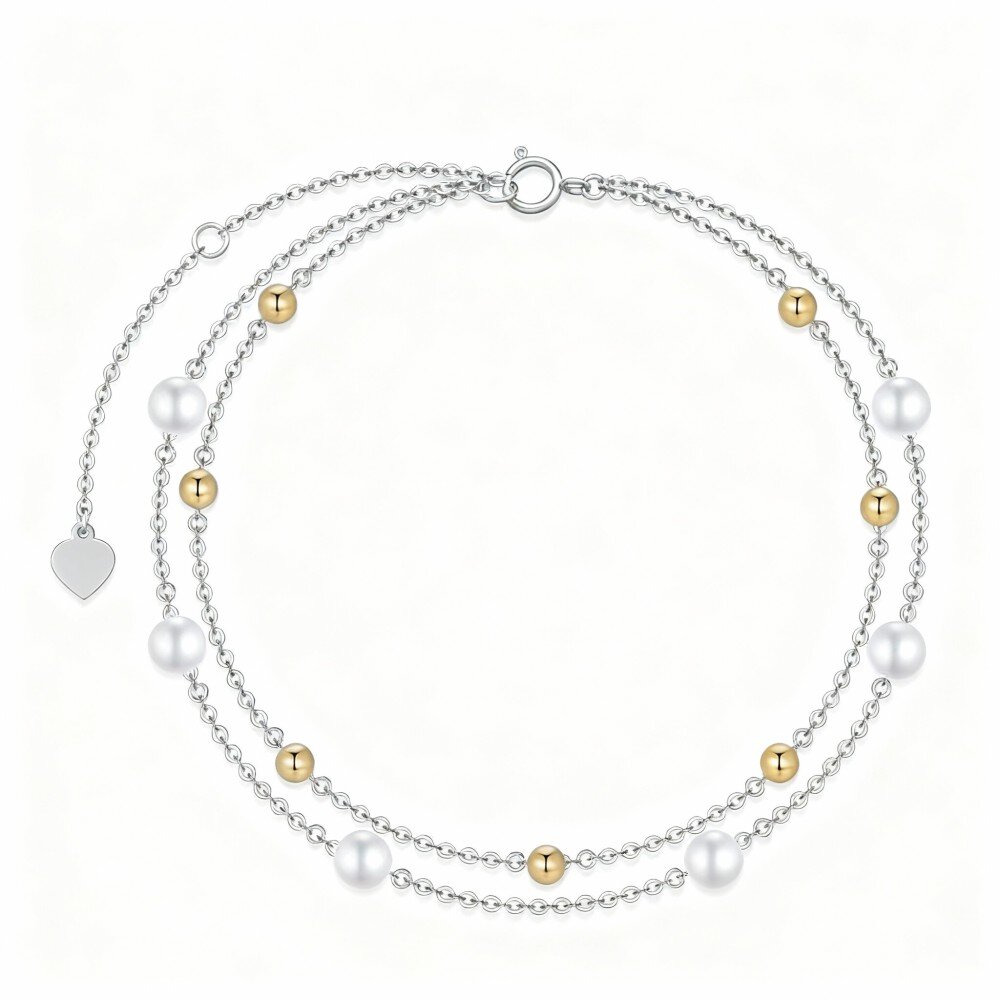Elevate your fashion statement with our stunning 10K White Gold Layered bracelet featuring exquisite pearls.