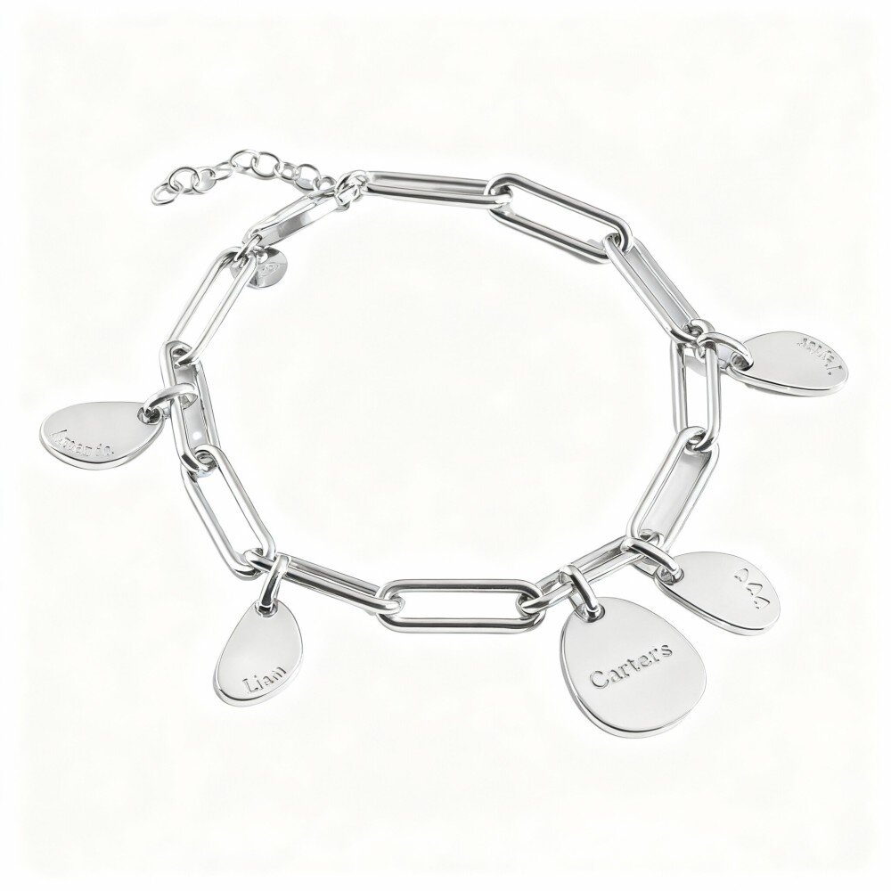 Our exquisite 10K White Gold Charm Bracelet is a stunning piece designed for women, featuring a unique option for personalized engraving.