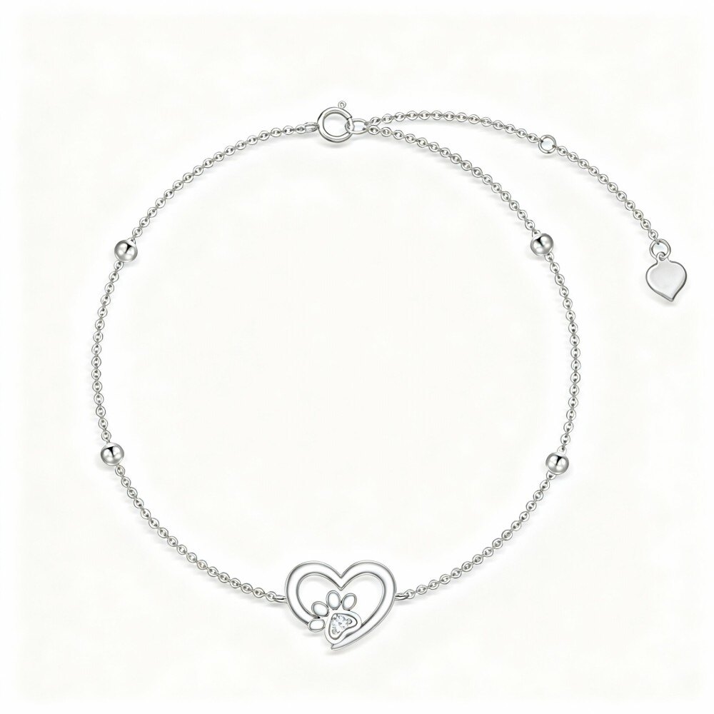 Discover our stunning 10K White Gold Charm Bracelet, a perfect blend of charm and elegance featuring a paw and heart design adorned with sparkling Cubic Zirconia.