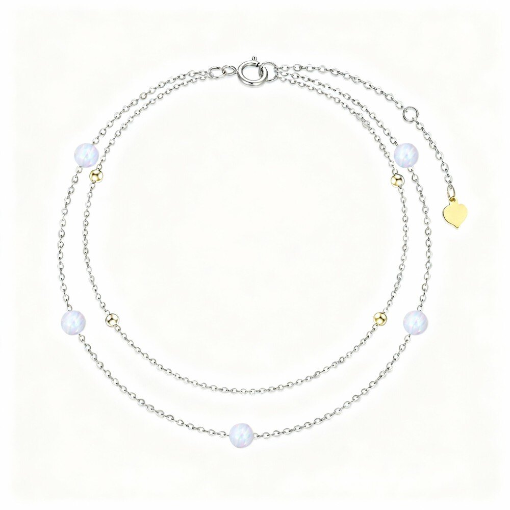 Discover the elegance of our exquisite 10K White Gold Multi-layered Opal Anklet, featuring a captivating circular-shaped opal charm tailored for women.