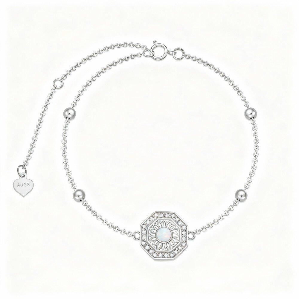 Elevate your look with our stunning 10K White Gold Charm Bracelet, featuring a captivating circular opal in a beautiful sunflower design for stylish women.