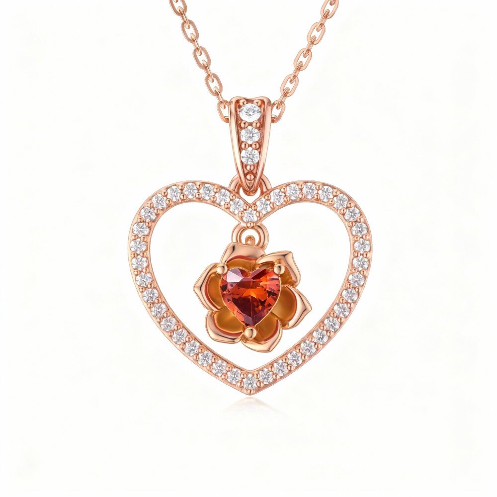 This stunning necklace showcases a meticulously crafted heart-shaped pendant, adorned with a brilliant red cubic zirconia gemstone that captures the light beautifully. Set in luxurious 14K Rose Gold, it embodies both romance and refinement, making it a perfect gift for any special occasion or a splendid addition to your own collection. Ideal for women who appreciate both classic design and contemporary flair, this piece adds a touch of elegance to any outfit.