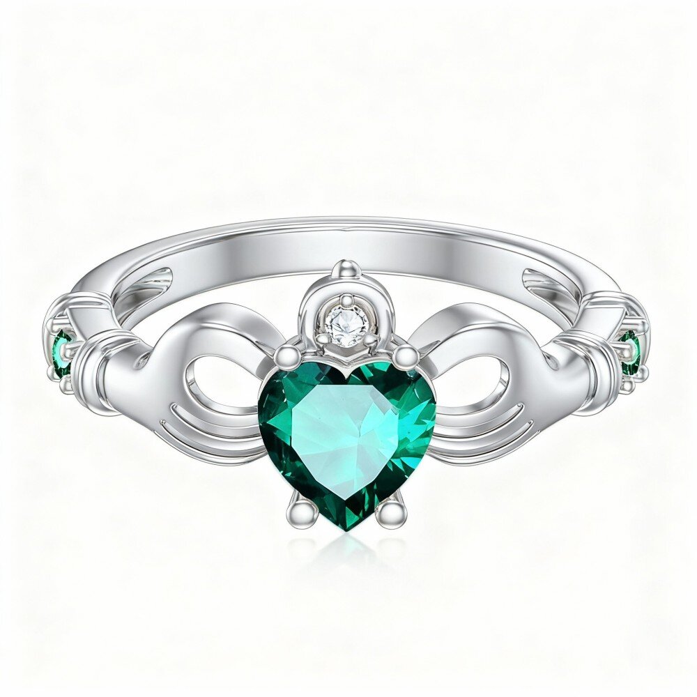 Explore the definition of elegance with our stunning 14K White Gold wedding ring, specially crafted for women, featuring a breathtaking heart-shaped diamond and a radiant emerald centerpiece.