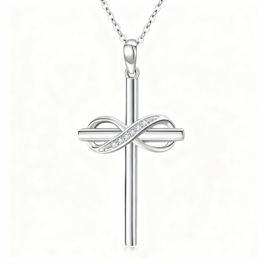 Discover our exquisite 14K White Gold Pendant Necklace, featuring a stunning diamond-encrusted Cross intertwined with an infinity symbol, designed for the modern woman seeking elegance and timeless beauty.