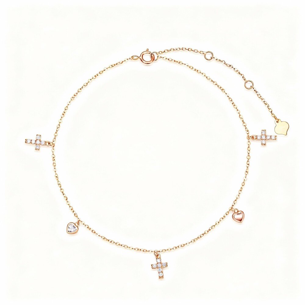 /18k-rose-gold-crystal-cross--heart-single-layer-charm-anklet-p77703709?sku=rl9548