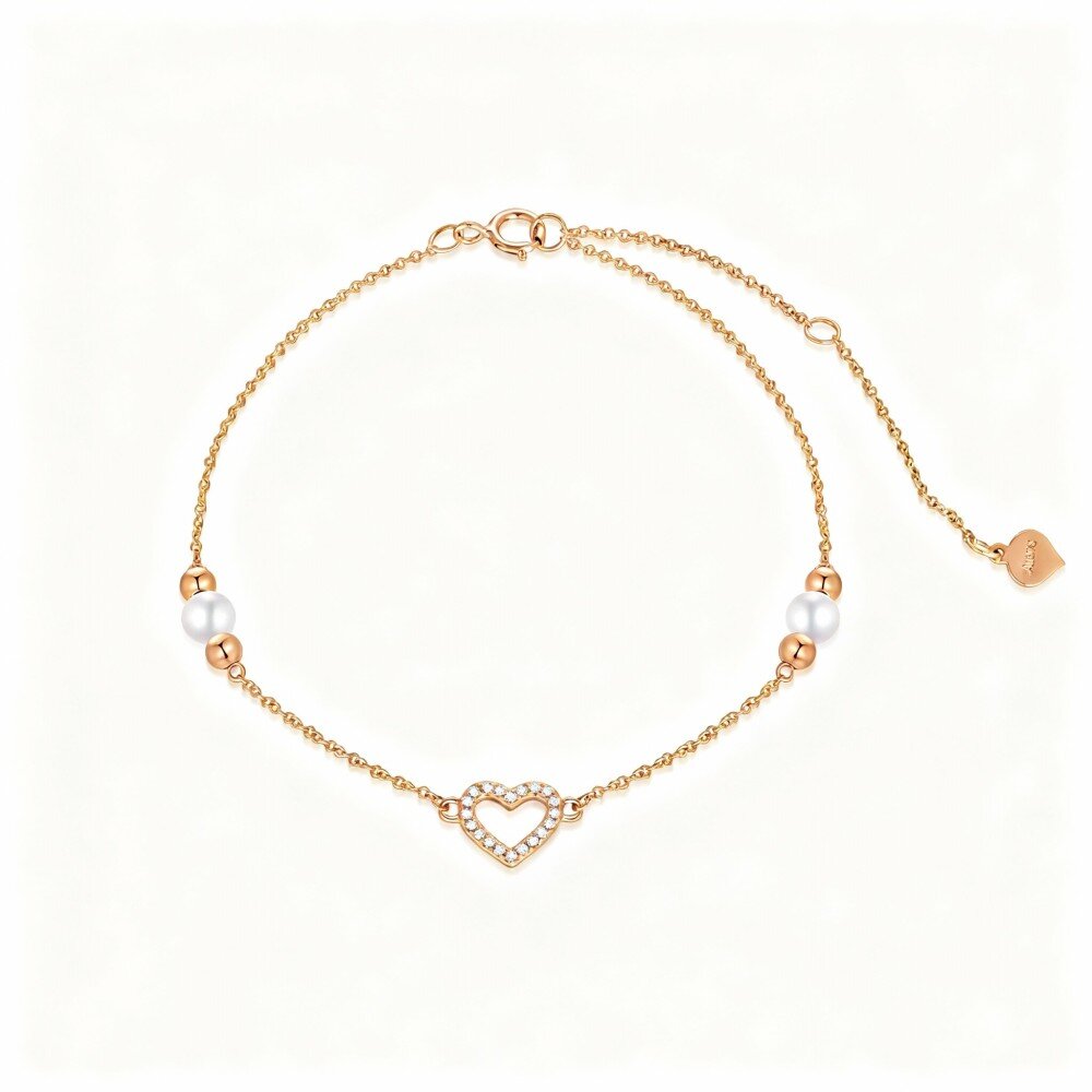 Indulge in luxury with our beautifully crafted 18K Rose Gold Charm Bracelet, designed to captivate and inspire. This magnificent bracelet features enchanting heart-shaped charms, each meticulously adorned with brilliant cubic zirconia that sparkles like diamonds. The addition of lustrous pearls adds an exquisite touch of femininity, making it the perfect gift for a cherished loved one or a delightful treat for yourself. Whether you're dressing up for a special occasion or adding a touch of elegance to your everyday wear, this bracelet is sure to make a statement. Designed with adjustable features, it offers a comfortable fit for all wrist sizes, allowing you to wear this versatile piece effortlessly from dawn to dusk. Elevate your accessory collection and let this charm bracelet be the perfect complement to both casual and formal outfits, showcasing your unique style and sophistication.