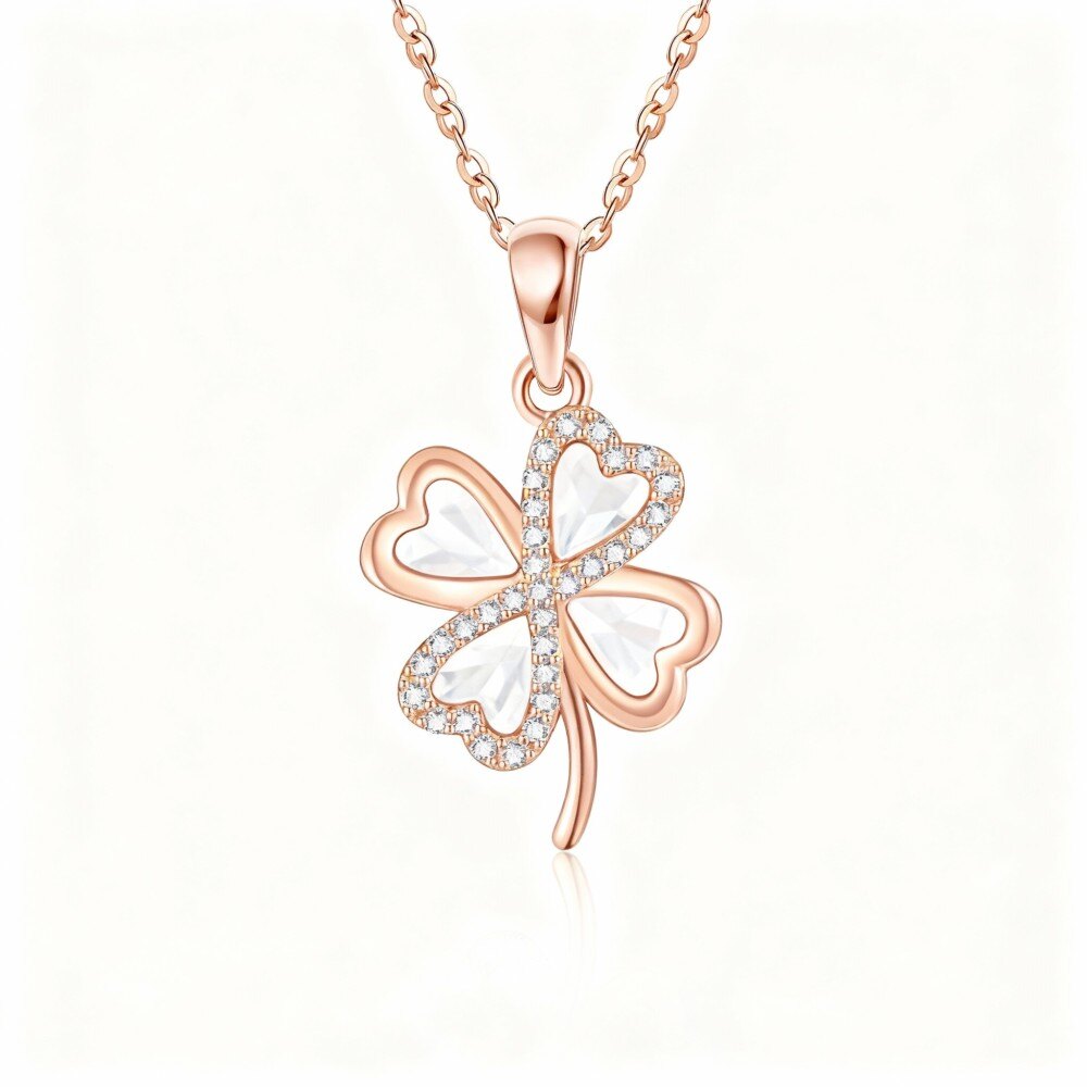 Enhance your elegance with our 18K Rose Gold Pendant Necklace featuring a stunning Four Leaf Clover design adorned with dazzling Cubic Zirconia, perfect for luxurious women.
