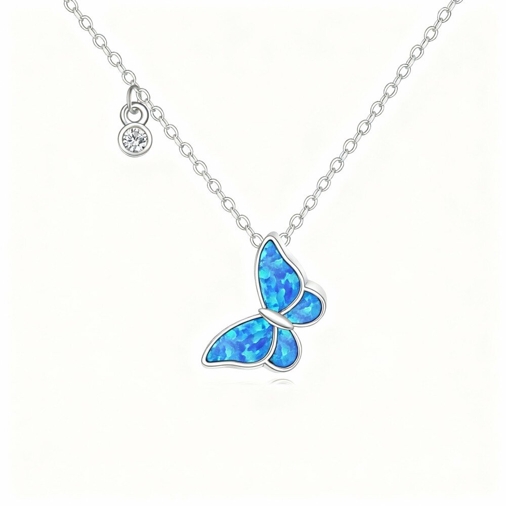Crafted with opulent 18K White Gold, this exceptional Pendant Necklace showcases a harmonious blend of circular and unique butterfly shapes, each embellished with high-quality Cubic Zirconia and mesmerizing Opal stones. The sparkling clear and captivating blue gemstones add a delightful touch of sophistication, making it the perfect accessory for any occasion. Ideal for women who cherish a fusion of classic elegance and contemporary charm, this necklace transcends ordinary jewelry—it's a true statement piece that reflects individuality and style. Whether dressing up for a special event or adding flair to your everyday outfits, this versatile necklace is designed to catch the eye and spark conversations.