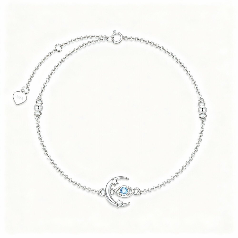 Crafted from luxurious 9K White Gold, the Bead Station Chain Bracelet features delicate round blue zircon stones that shimmer with every move, reminiscent of a serene moonlit sky. The intricately arranged beads enhance its allure, making it a versatile piece that complements any outfit, whether casual or sophisticated, and an ideal gift for the discerning woman who appreciates fine jewelry.