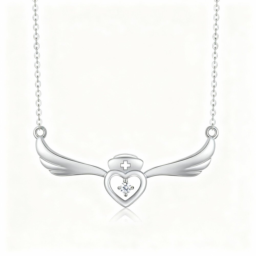 Discover our exquisite Platinum Angel Wing Heart Pendant Necklace, designed to captivate and dazzle with its ethereal beauty.