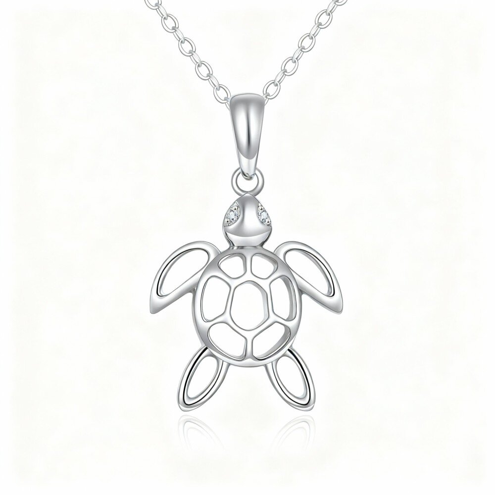 Discover the elegance of our Platinum Pendant Necklace, designed with a stunning tortoise motif accented by sparkling Cubic Zirconia, perfect for all styles.